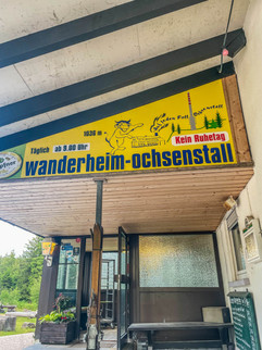 Wir gehen allerdings noch zwei km weiter. Steil den Berg hoch bis zu unserem Etappenziel, der Skihütte Ochsenstall.
