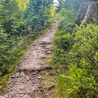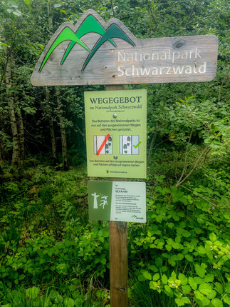 Gut erholt setzt man seinen Weg fort, vorbei am stillen Herrenwieser See und hinauf durch die düstere Bergflanke des Seekopfs (1.001 m). Mit weiteren 350 Höhenmetern hat man den Aufstieg aus dem Murgtal zu den ersten "Tausendern" des Nordschwarzwalds erfolgreich gemeistert. Die Aussicht vom Gedenkstein für Philipp Bussemer, einem der Gründerväter des Westwegs, ist zwar nicht ganz so spektakulär wie erhofft. Aber hey, das gemütliche Bänkchen unter den Rhododendren verleiht dem Moment doch eine gewisse Würze, oder? Von dort aus könnte man eigentlich gleich den holprigen Forstweg zum bereits in Sichtweite befindlichen Friedrichsturm auf der Badener Höhe (1.002 m) nehmen, aber wer will schon immer den einfachsten Weg gehen?