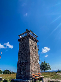 Auf dem höchsten Punkt des Plateaus erwartet uns eine Aussichtskanzel, die uns einen atemberaubenden Fernblick schenkt. Ein Bohlenpfad führt uns durch das einzigartige Hochmoor in Richtung Dreifürstenstein und Hornisgrindeturm, der sich am südlichen Ende des Moores oberhalb des malerischen Mummelsees erhebt. Der Turm, im Jahr 1910 vom Schwarzwaldverein erbaut, diente einst dem französischen Militär und erzählt seine eigene Geschichte.