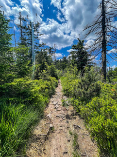 Am Mummelsee treffen wir schließlich wieder auf die Schwarzwaldhochstraße, der der Westweg mal mehr, mal weniger folgt. Wir passieren das Seibelseckle und steigen allmählich bergauf, unter dem Altsteigerkopf hindurch, in Richtung Seekopf (1.054 m). Vor uns breitet sich der beeindruckende Blick auf den Wildsee am Eutinggrab aus und lädt uns zum Verweilen ein. Und wenn wir dann weiterziehen, passieren wir den Ruhestein, bevor wir den majestätischen Schliffkopf (1.055 m) erklimmen, der uns eine weite Grindenlandschaft offenbart. Dabei erfreuen uns immer wieder Fernsichten und spannende botanische Details am Wegesrand.