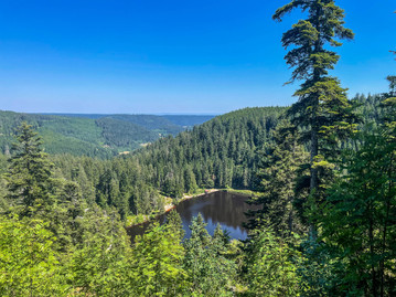 Kurz darauf stoßen wir auf die Kreuzung namens Graseck, an der uns der Westweg vor die schwierige Entscheidung zwischen der Originalroute und der verlockenden Variante stellt. Aber wie dem auch sei, ob wir uns für den traditionellen Weg oder den abenteuerlichen Pfad über die Teufelskanzel entscheiden, der Westweg führt uns weiterhin auf der Kammhöhe entlang. Dabei passieren wir unauffällig die charmante Hildahütte und tauchen ein in eine stille und ursprüngliche Landschaft, die uns zur Lettstädter Höhe führt. Und ganz ehrlich, auf diesem Abschnitt gibt es einfach zu viele verlockende Aussichtspunkte.